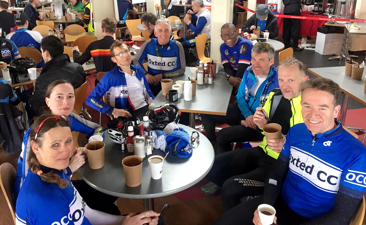 ELEVEN OXTED RIDERS battled it out in the Kentish Killer sportive today, a tough event with huge hills. 526 riders finished the 70 mile route, 243 finished the 45 mile route. The KK is one of the best organised sportives in the south with a great HQ at Brands Hatch motor racing circuit. Here’s a ‘Relive’ graphic of the route LINK. And a few of us relaxing afterwards…
